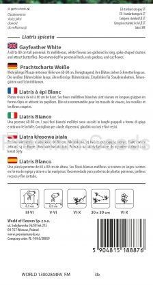 Mehrjährige Pflanze mit einer Höhe von 60-80 cm. Honigtragend, ihre Blüten ziehen Schmetterlinge an. Die weißen Blüten bilden lange, ährenförmige Blütenstände. Empfohlen für Staudenrabatten, Felsengärten und Schnittblumen.