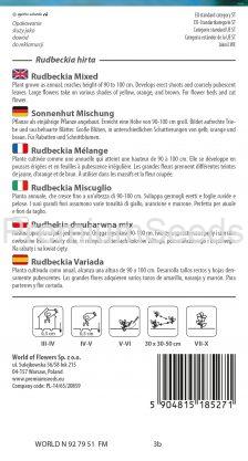 Eine einjährige Pflanze mit einer Höhe von 150-200 cm. Sie bildet einen aufrechten Stängel mit seitlichen Verzweigungen, an denen sich auch Blütenstände entwickeln. Die Blüten in der Mischung haben warme Schattierungen von Orange, Rot und Gelb. Geeignet für hohe Beete und als Schnittblumen.