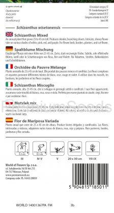 Einjährige Pflanze mit einer Höhe von 25-45 cm. Zarte, stark verzweigte Triebe. Subtile, sehr effektvolle Blüten, weiß oder in Schattierungen von Rosa, Rot und Violett. Für Rabatten, Streifen, Balkonkästen und Schnittblumen.
