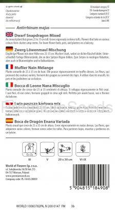 Einjährige Pflanze mit einer Höhe von 20-30 cm. Steife und aufrechte Triebe. Volle bzw. halbvolle Blüten, in vielen intensiven Farben. Empfohlen für Rabatten, Streifen und Blumenbeeten und zum Anbau in Behältern.