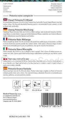 Einjährige Pflanze mit einer Höhe von 30-40 cm. Bildet niedrige, stark wuchernde Sträucher. Kelchförmige Blüten, in vielen Farben. Lange und reichlich blühende Pflanze, empfohlen zum Setzen in Blumentöpfen, Balkonkästen sowie für Rabatten und Streifen.