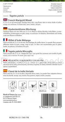 Planta anual de 20 a 30 cm de altura. Una mezcla de variedades de una sola flor en distintos tonos de amarillo, naranja, rojo y marrón. Perfecta para parterres, césped, arriates y macetas.