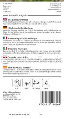 Planta perenne de 15 a 20 cm de altura. Produce flores en forma de campana de color blanco, morado claro o rojo. Las cabezas de semillas plateadas adornan las plantas después de que las flores se hayan marchitado. Para parterres y jardines rocosos.