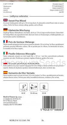 Planta trepadora anual con brotes de hasta 120 cm de longitud. Sus flores, agradablemente perfumadas, adoptan diversos colores. Perfecta para vallas, barandillas de balcones, cenadores y flor cortada.