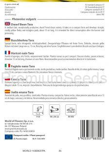 Variedad semitemprana, muy prolífica. Plantas enanas de porte compacto y arbustivo. Vainas verdes de una longitud de unos 12-14 cm, carnosas, sin hebras y sabrosas. Recomendada para consumo directo y conservas.