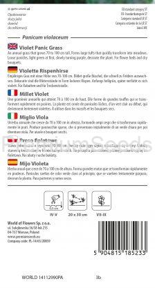 Hierba anual que crece de 70 a 100 cm de altura. Forma grandes matas que se transforman rápidamente en praderas. Panículas sueltas de color verde claro al principio, que se vuelven lentamente púrpura, decoran la planta. Para parterres y ramos secos.
