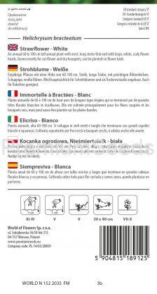 Planta anual de 60 a 100 cm de altura con tallos erectos y largos que terminan en grandes cabezas florales blancas y escamosas. Cultivada sobre todo para flor cortada y ramos secos, puede plantarse en parterres.