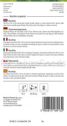 Esta planta anual de 80 a 120 cm de altura se extiende ampliamente, adquiriendo una densa forma esférica. Sus hojas estrechas de color verde claro recuerdan el follaje del ciprés. Se utiliza a menudo como seto bajo o como ornamental solitario.