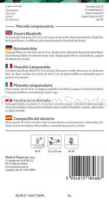 Une plante annuelle qui atteint 20 à 30 cm de haut. Elle pousse en touffes denses avec de nombreuses fleurs. Les fleurs sont bleu vif, en forme de cloche. C’est une plante mellifère et ornementale pour les parterres et les bordures.