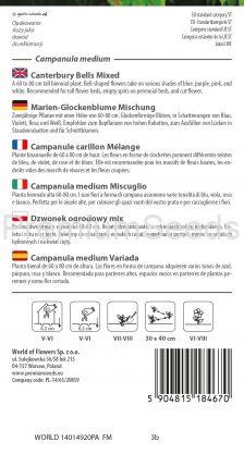 Plante bisannuelle de 60 à 80 cm de haut. Les fleurs en forme de clochettes prennent différentes teintes de bleu, de violet, de rose et de blanc. Elle est recommandée pour les massifs de fleurs hautes, les endroits vides des massifs de vivaces et les fleurs coupées.