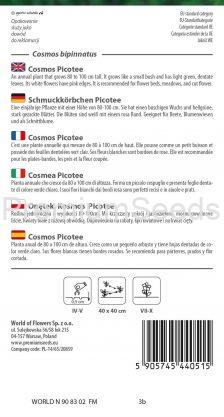 C’est une plante annuelle qui mesure de 80 à 100 cm de haut. Elle pousse comme un petit buisson et possède des feuilles dentelées vert clair. Ses fleurs blanches sont bordées de rose. Elle est recommandée pour les plates-bandes, les prés et la fleur coupée.