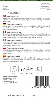 Plante annuelle aux pousses rampantes de 40 à 50 cm de long. De grandes fleurs en forme d’entonnoir se développent en grand nombre sur des tiges ramifiées. Elle est recommandée pour les paniers suspendus, les jardinières sur un balcon.