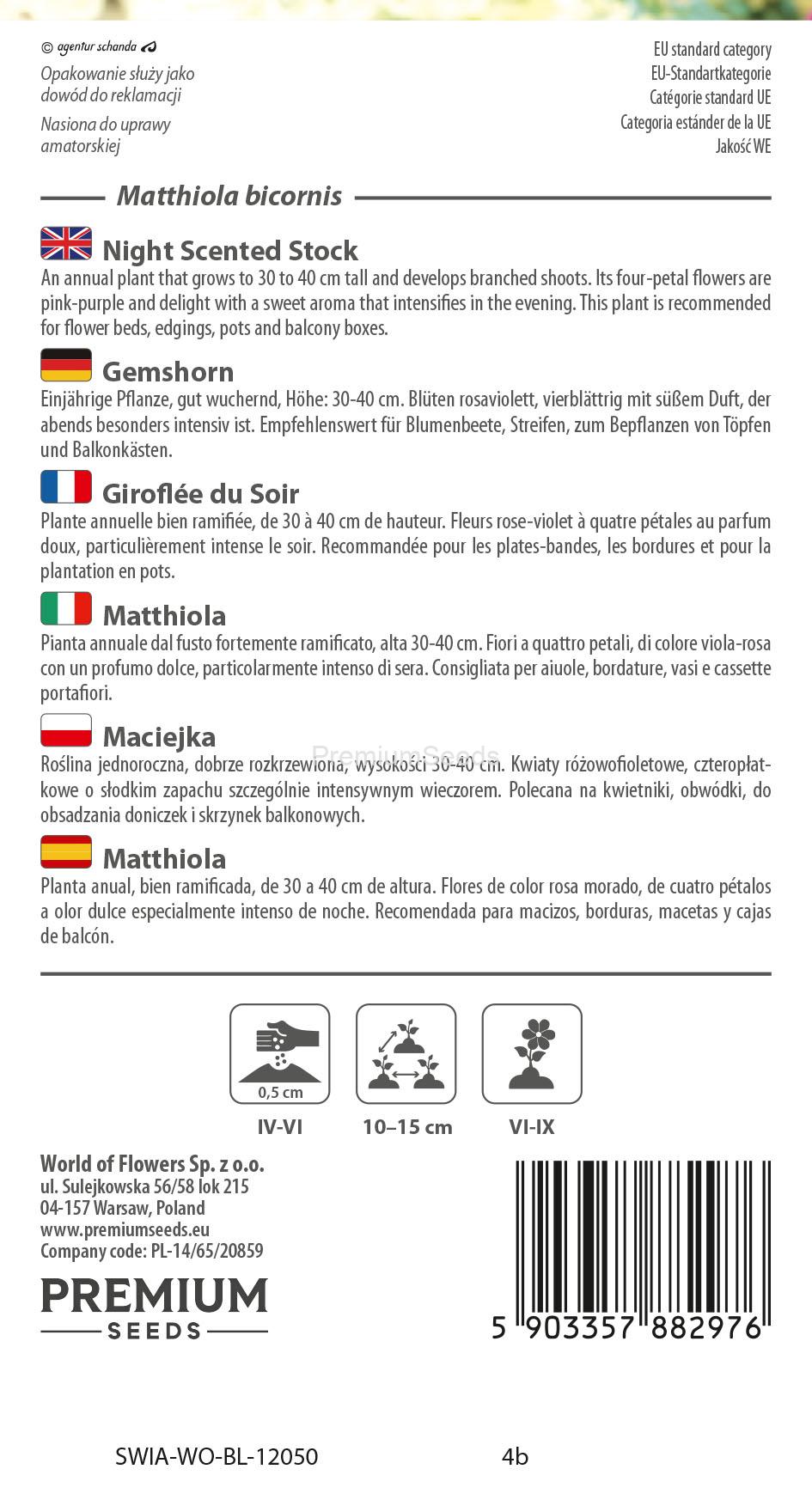 Plante annuelle bien ramifiée, de 30 à 40 cm de hauteur. Fleurs rose-violet à quatre pétales au parfum doux, particulièrement intense le soir. Recommandée pour les plates-bandes, les bordures et pour la plantation en pots.