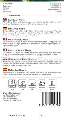 Una biennale alta 200-250 cm. Produce un alto stelo fiorito che termina con un grappolo di fiori a forma di spiga nel secondo anno. Fiori doppi di colore bianco. Consigliata per giardini rustici e fiori recisi.
