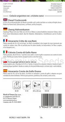 A 20 to 30 cm tall annual plant. Its flowers resemble cock’s combs and take on a variety of bright colours. Perfect for flower beds, balcony boxes, cut flower, and dry bouquets.