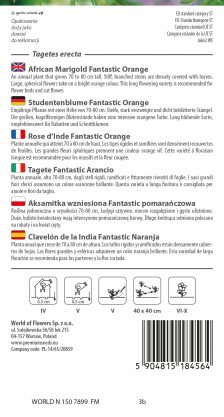 An annual plant that grows 70 to 80 cm tall. Stiff, branched stems are densely covered with leaves. Large, spherical flowers take on a bright orange colour. This long flowering variety is recommended for flower beds and cut flower.