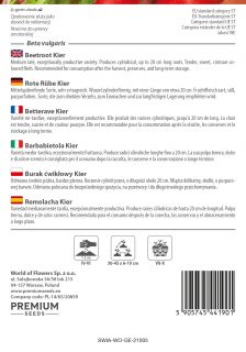 Medium late, exceptionally productive variety. Produces cylindrical, up to 20 cm long roots. Tender, sweet, crimson-coloured flesh. Recommended for consumption after the harvest, preserves, and long-term storage.