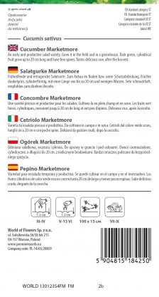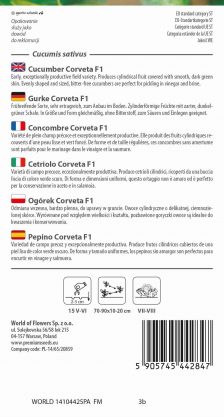 A medium early, very productive field variety. Displays high tolerance of powdery mildew and angular leaf spot. Produces short, shapely, pale green fruit sparsely covered with warts. Perfect for gherkins and pickling in vinegar. Coating ingredients: peat, dolomite, clay.
