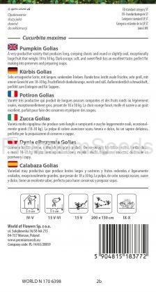 An exceptionally productive variety. It produces round slightly flattened fruit weighing circa 20 kg. It is yellow-orange in colour, juicy, tasty and rich in sugars. This squash is perfect for eating raw, home preserves and Halloween decoration.