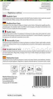 A very early variety for cultivation in the field and in greenhouses. It develops elongated, red, white-tipped roots. Its fruit consists of white, crunchy, mildly tasting flesh. Recommended for sandwiches, salads and as a dish decoration. Coating ingredients: peat, dolomite, clay.