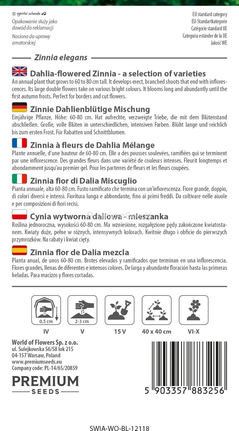 Dahlia – flowered Zinnia – a selection of varieties – seeds