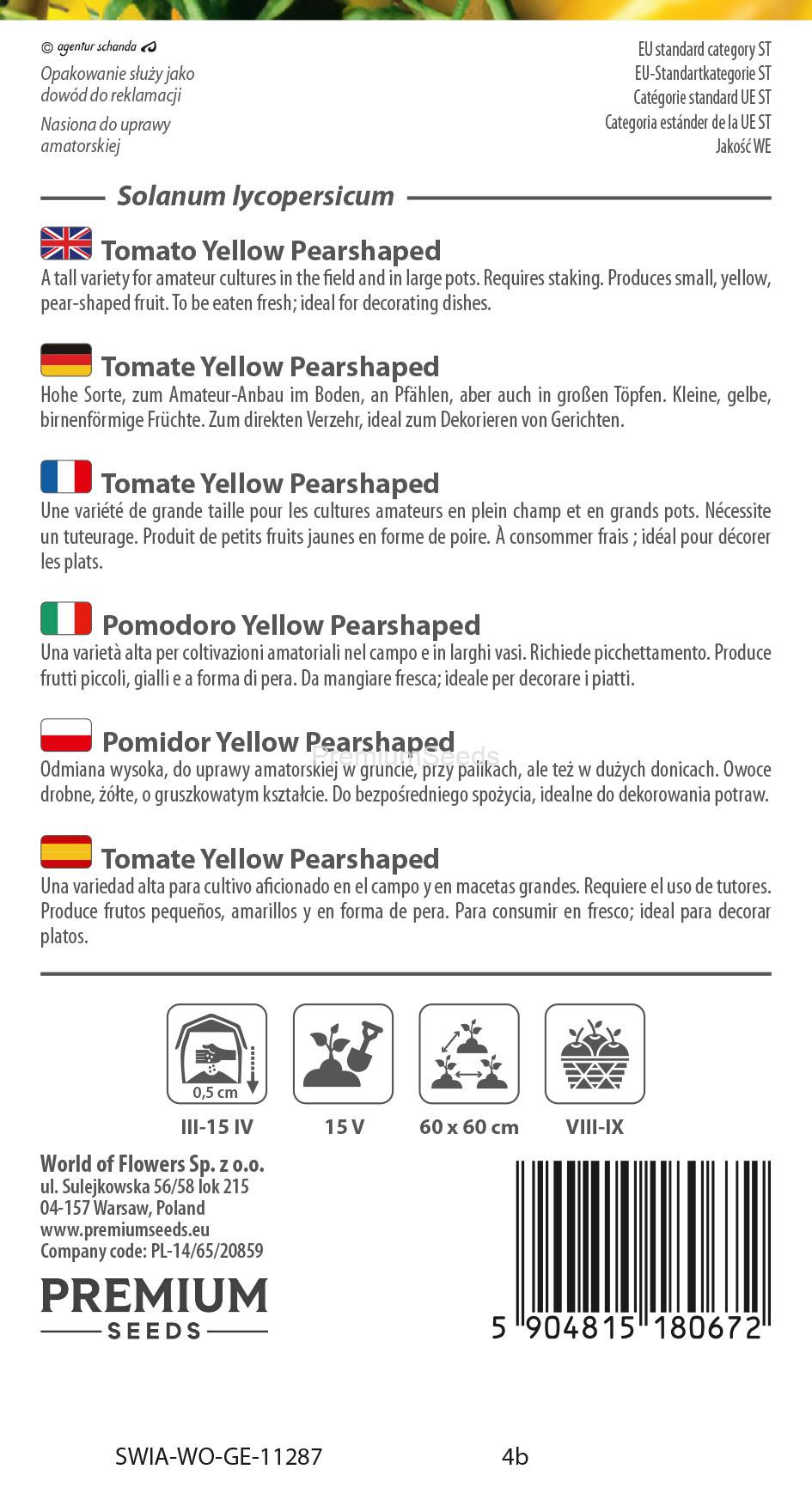 A tall variety for amateur cultures in the field and in large pots. Requires staking. Produces small, yellow, pear-shaped fruit. To be eaten fresh; ideal for decorating dishes.