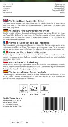 Selection of annual sun-loving plants that produce flowers in assorted colours that do not fade when dried. They retain both their colour and shape. Recommended for dry bouquets, can also be used in fresh flower compositions.