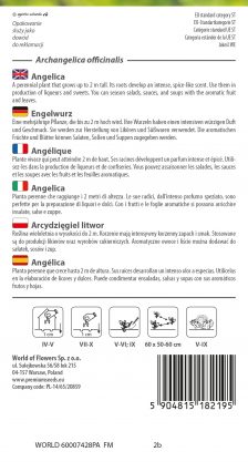 A perennial plant that grows up to 2 m tall. Its roots develop an intense, spice-like scent. Use them in production of liqueurs and sweets. You can season salads, sauces, and soups with the aromatic fruit and leaves.