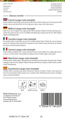A late, productive variety that can be stored over the winter. Produces thick, up to 24 cm long roots. Dark orange, crunchy, and sweet flesh. Use it to make juice, salads, soups, and in main courses.