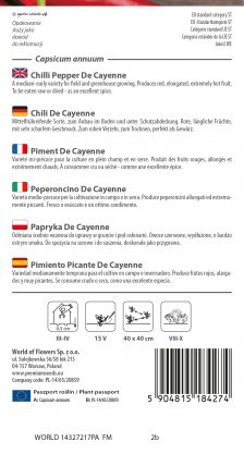 A medium-early variety for field and greenhouse growing. Produces red, elongated, extremely hot fruit. To be eaten raw or dried – as an excellent spice.