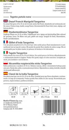 An annual that grows 20 to 30 cm tall. An early variety that flowers abundantly and continuously over the season. Produces large, double, orange flowers. Recommended for flower beds, lawns, edgings, and balcony planters.