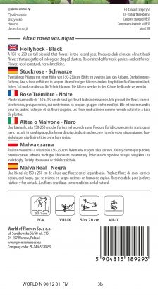 A 150 to 250 cm tall biennial that flowers in the second year. Produces dark crimson, almost black flowers that are gathered in long ear-shaped clusters. Recommended for rustic gardens and cut flower. Flowers used as natural, herbal medicine.