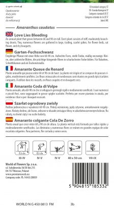 An annual plant that grows between 60 and 90 cm tall. Erect plant consists of stiff, moderately branching shoots. Tiny, numerous flowers are gathered in large, trailing, scarlet spikes. For flower beds, cut flower, and dry bouquets.