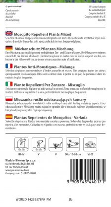 Selection of annual and perennial ornamental plants and herbs. They all excrete scents that repel mosquitos. Grow it in the garden or in a pot, preferably in most frequented places.
