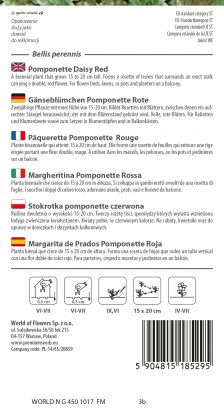 A biennial plant that grows 15 to 20 cm tall. Forms a rosette of leaves that surrounds an erect stalk carrying a double, red flower. For flower beds, lawns, or pots and planters on a balcony.