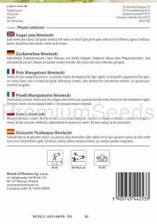 Early sweet pea variety. Tall plants develop stiff stems on which light green pods without the stiff lining appear. Delicious, tender, should be eaten whole. Seeds can be frozen.