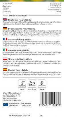 An annual that grows up to 200 cm tall. This quick growing, tall sunflower develops huge yellow flowers with a brown centre. Suitable for flower bed background, fences, walls, and cut flower.