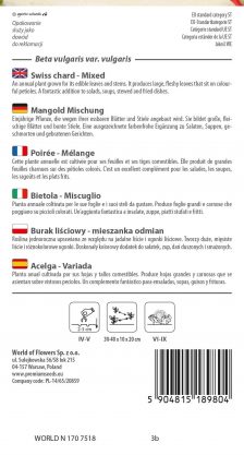 An annual plant grown for its edible leaves and stems. It produces large, fleshy leaves that sit on colourful petioles. A fantastic addition to salads, soups, stewed and fried dishes.