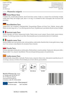 A medium late, exceptionally productive, dwarf French bean variety. It takes on a compact form and develops straight, vividly yellow fleshy and stringless pods, about 13 cm long. It is intended for direct consumption after the harvest and processing.