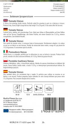 A cherry, low growing, bushy variety. Perfectly suited for growing in pots on a balcony or terrace. Produces tiny, round, bright orange berries that weigh 15 to 20 grams. To be eaten after the harvest.